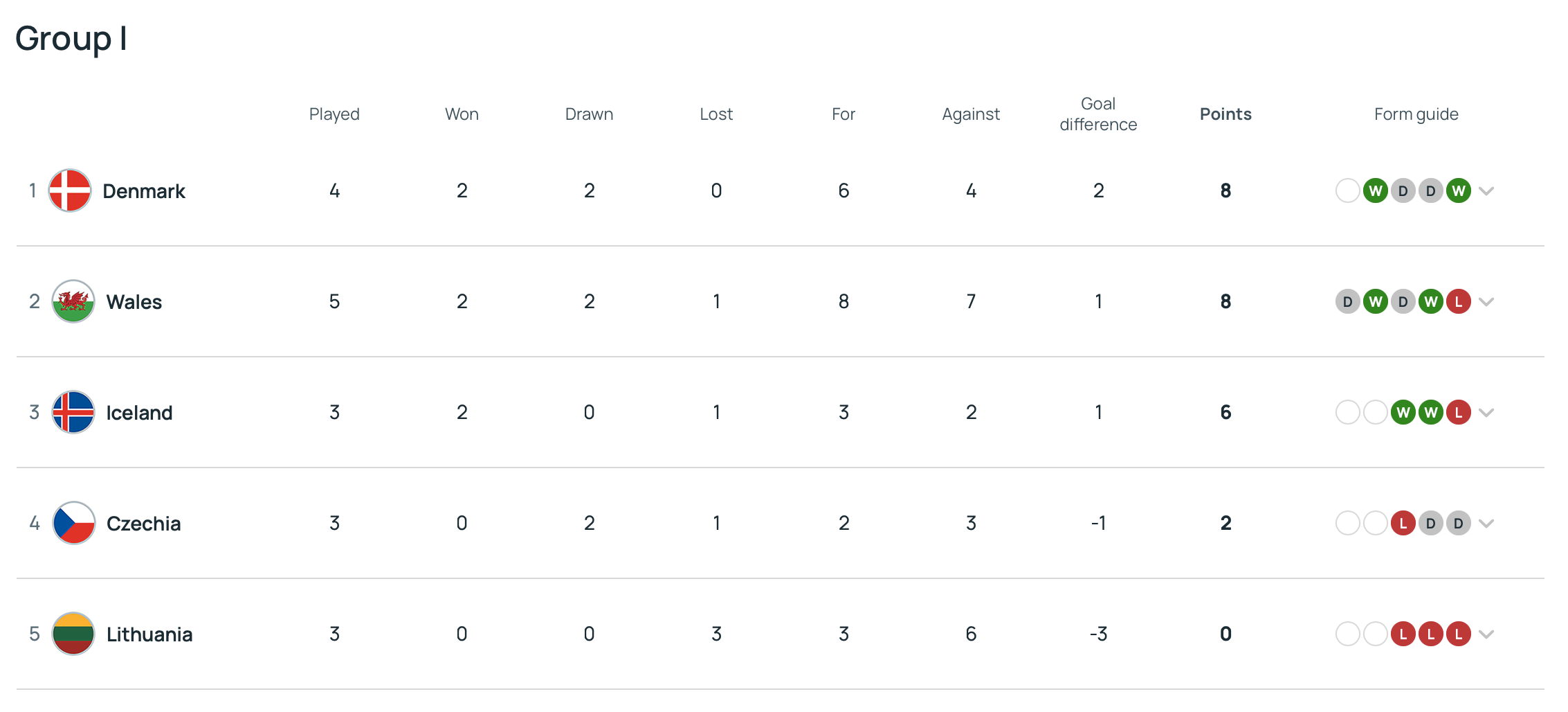 Here’s the state of play in Group I ahead of the game. Group leaders Denmark face Austria in their next fixture on Tuesday which means Cymru can go back to the top of the group with a victory this evening.