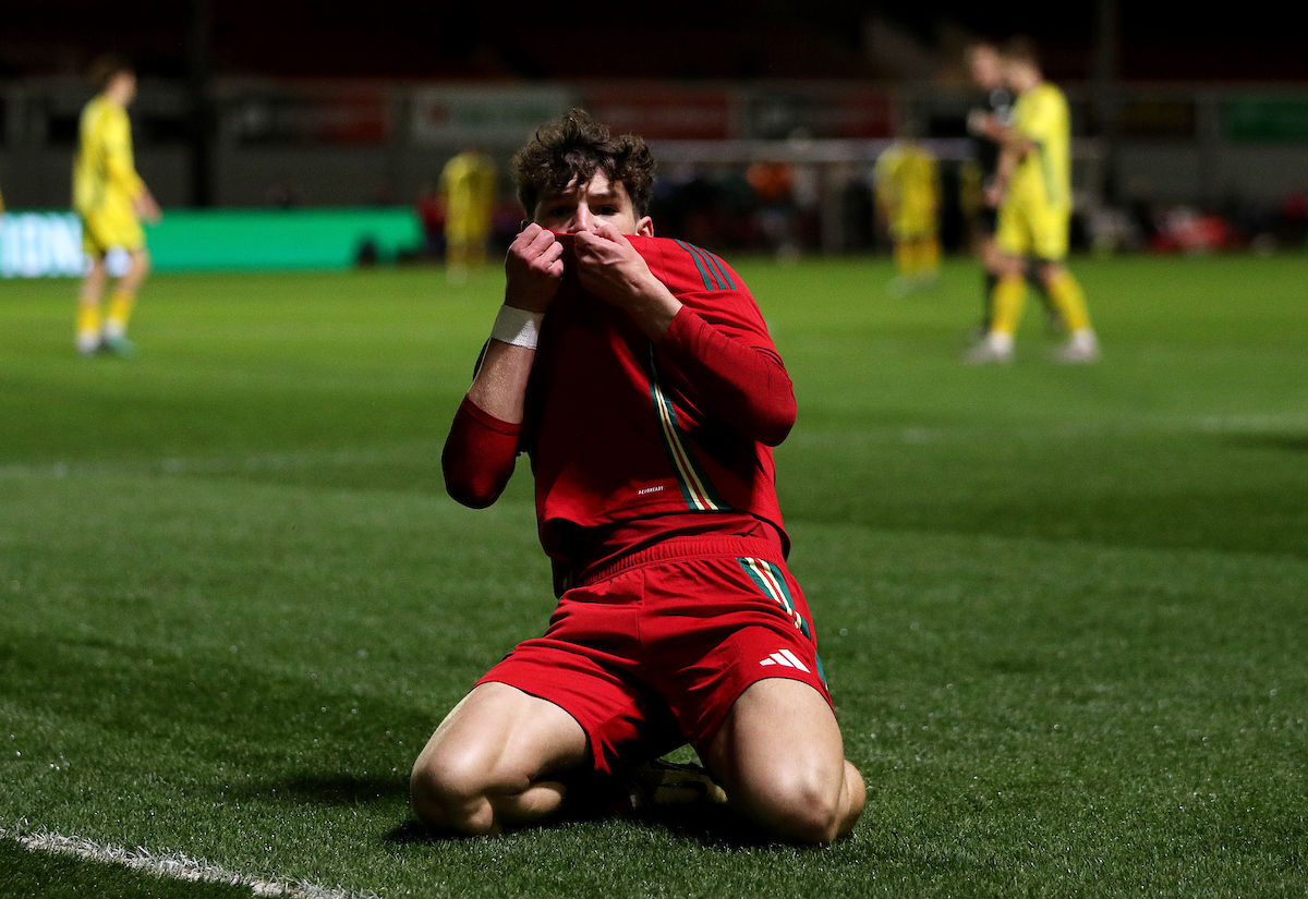 Lewis Koumas yn sgorio ar ei ymddangosiad cyntaf dros @Cymru D21 pic.twitter.com/ALhegomidv