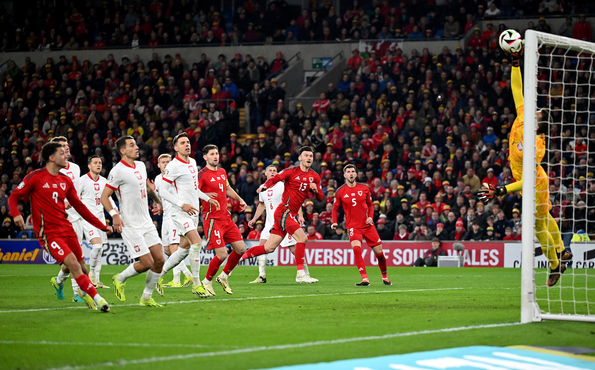 This had been an exceptionally tight game with the stats showing barely anything between the teams but it was Cymru who probably had the best chance of the match to break the deadlock when Kieffer Moore headed an effort toward the top right-hand corner of the goal. Somehow, Wojciech Szczęsny pulled off an incredible save to deny Cymru.