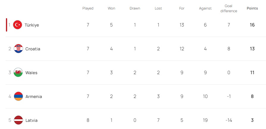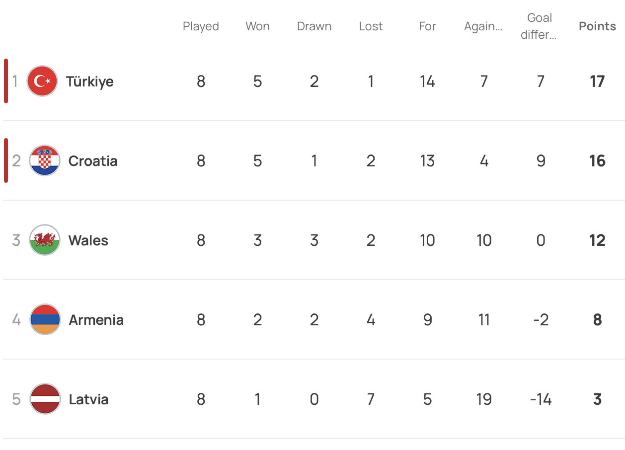 However, Armenia have claimed four points off Cymru, while Cymru have taken four points off Croatia to show just how open and competitive this group has been. Meanwhile, Türkiye have already qualified for the finals that will take place in Germany next summer.