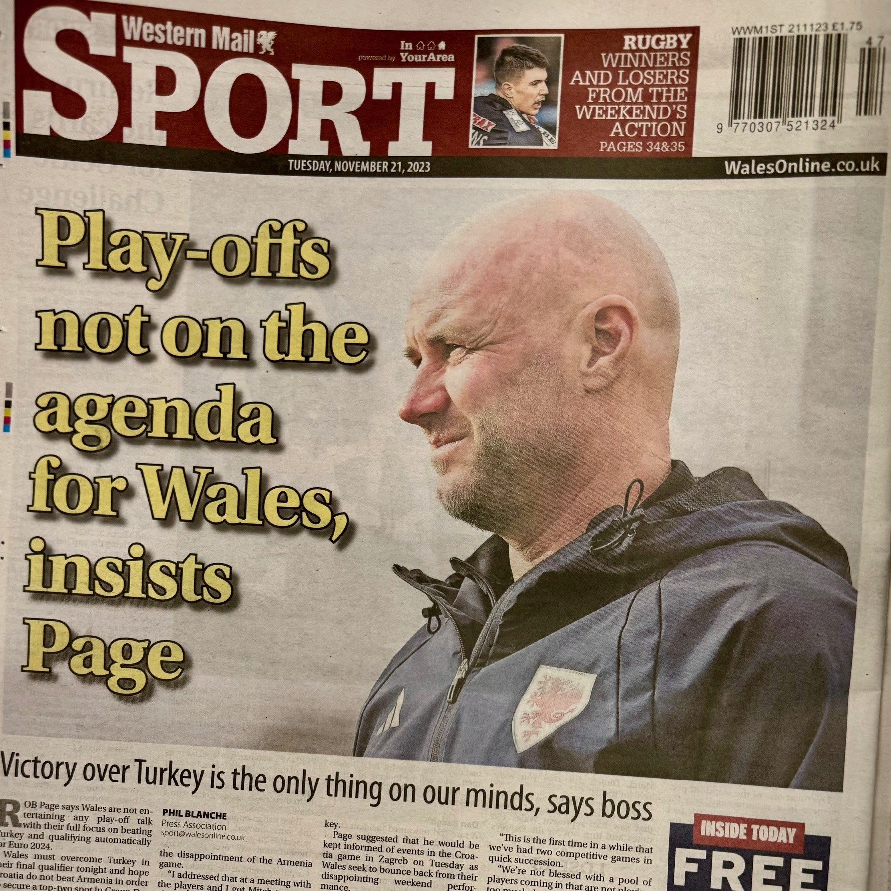 A familiar theme across the back pages in Wales this morning as manager Rob Page makes his point clear ahead of tonight’s EURO 2024 qualifier against Türkiye.