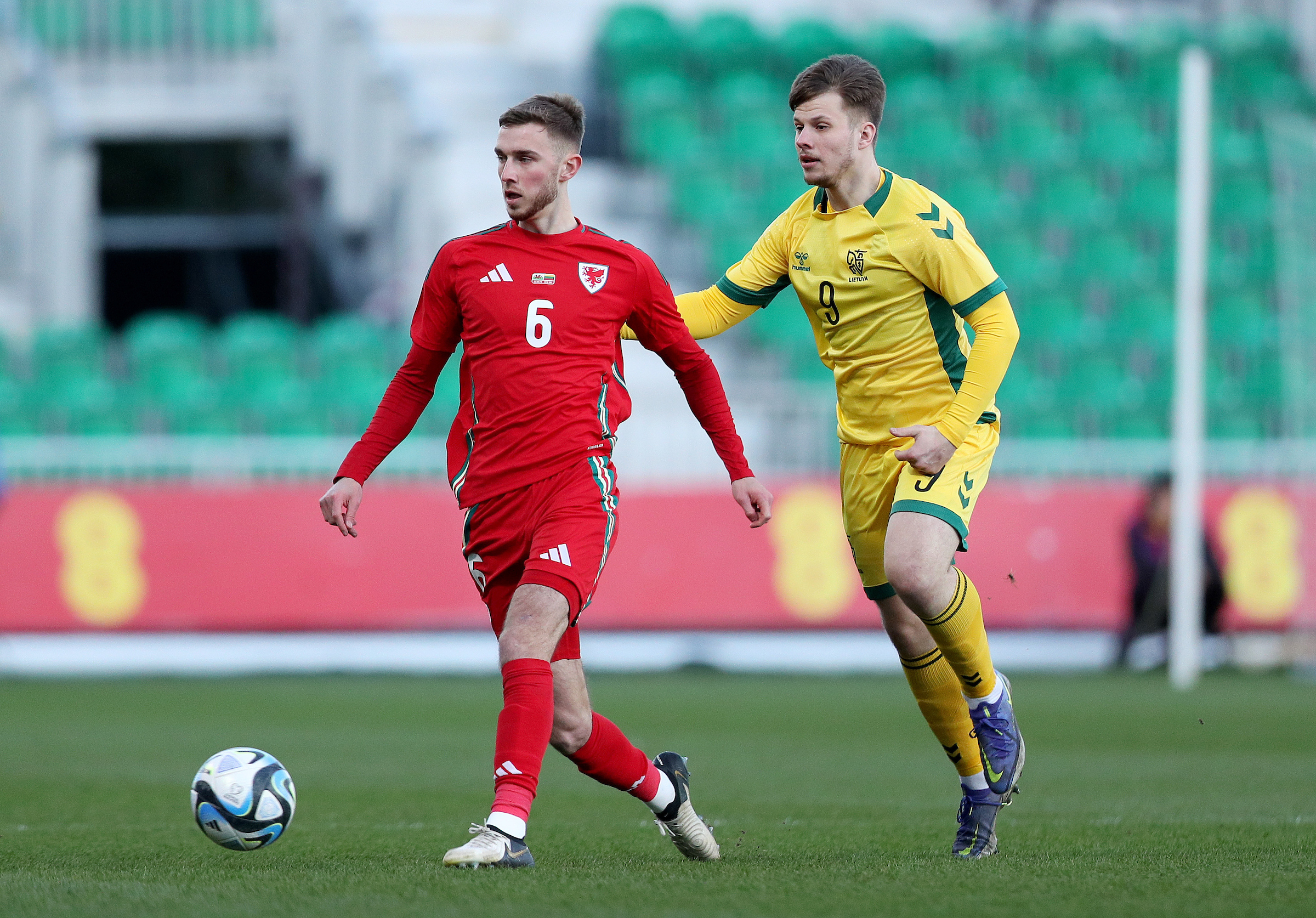 A yellow card for Josh Sheehan for a raised boot in his challenge on Tjay De Barr. No complaints from the Cymru captain on that one.