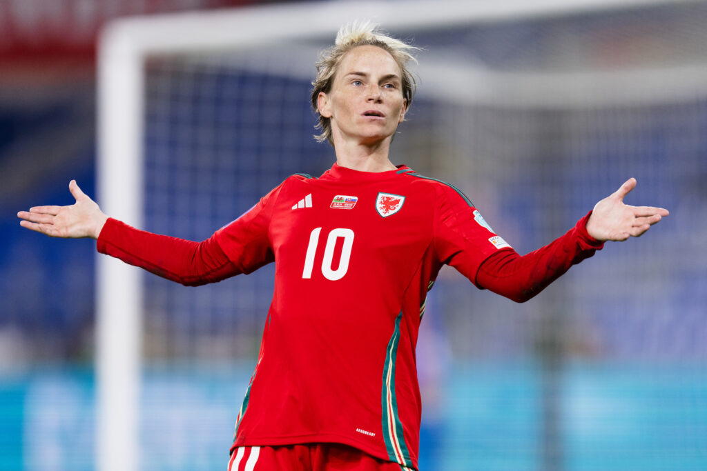 Fishlock drew level as Cymru’s top goalscorer – equalling Helen Ward’s record of 44 goals – when she rifled home the opening goal to put Wilkinson’s side ahead in the first half.