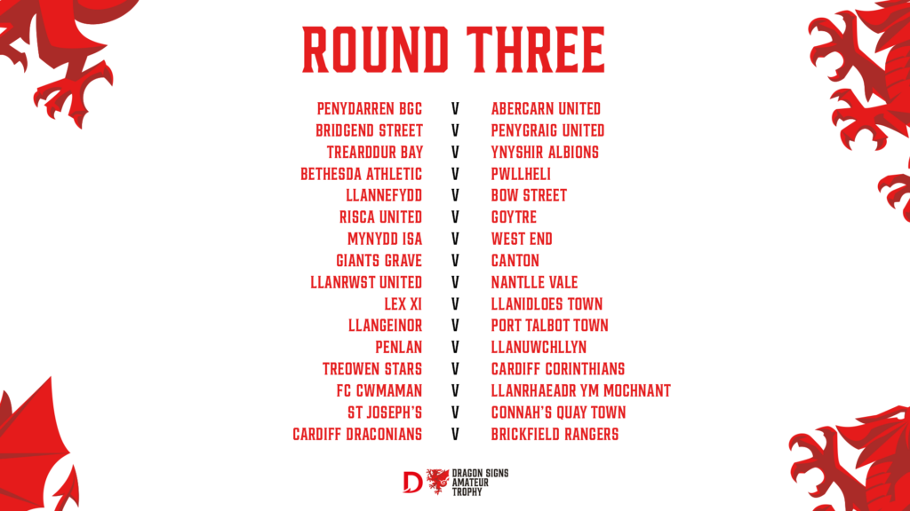 The Round Three draw for the 2024/25 Dragon Signs Amateur Trophy has been confirmed.