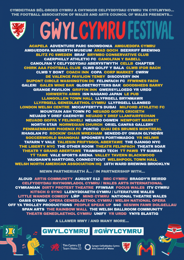 Gŵyl Cymru Festival is supported by the Welsh Government’s World Cup Partner Support Fund.