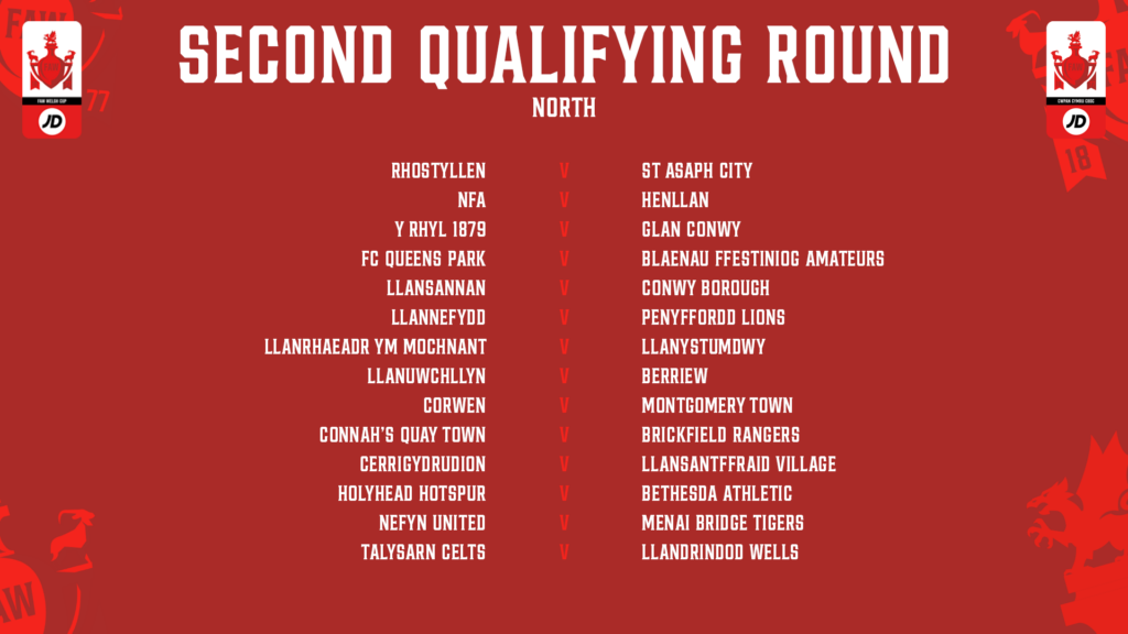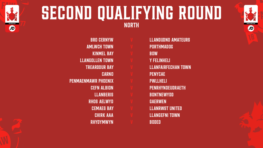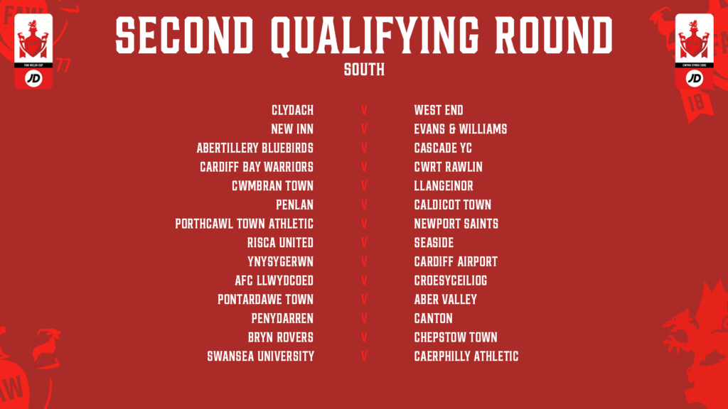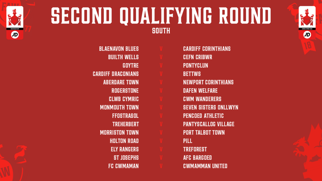 The draw has been made for the 2024/25 JD Welsh Cup second qualifying round, split into North and South sections.