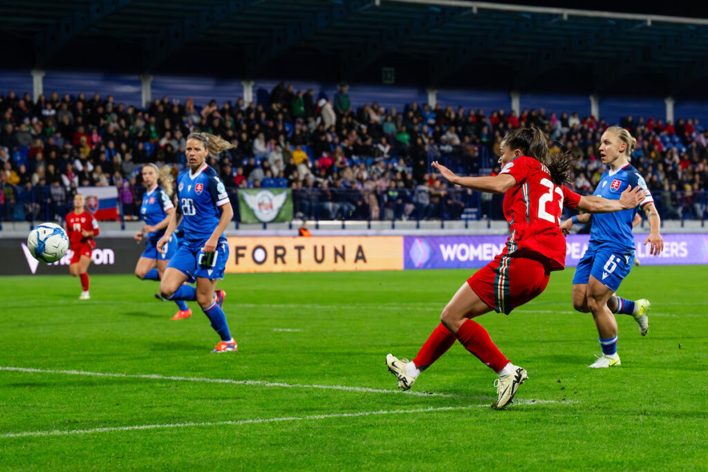 Ffion Morgan scored what could prove to be a crucial goal for Cymru in the final moments of the match, but it’s Slovakia who head to Cardiff with the advantage following their 2-1 win in Poprad.